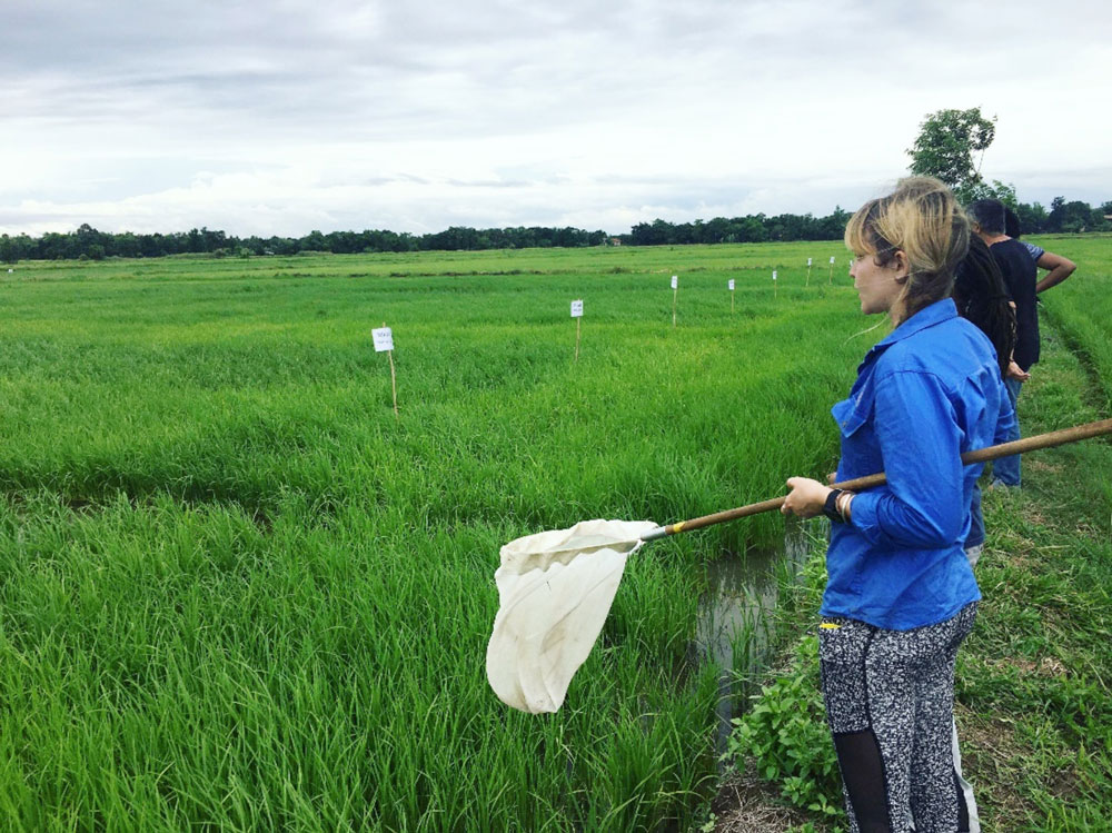 To ensure successful information dissemination and adoption of IPM methods, research is needed to identify acceptable adoption and translation strategies in the Cambodian context. Lucinda’s research involved both identifying the insects in the rice fields and surveying local farmers.