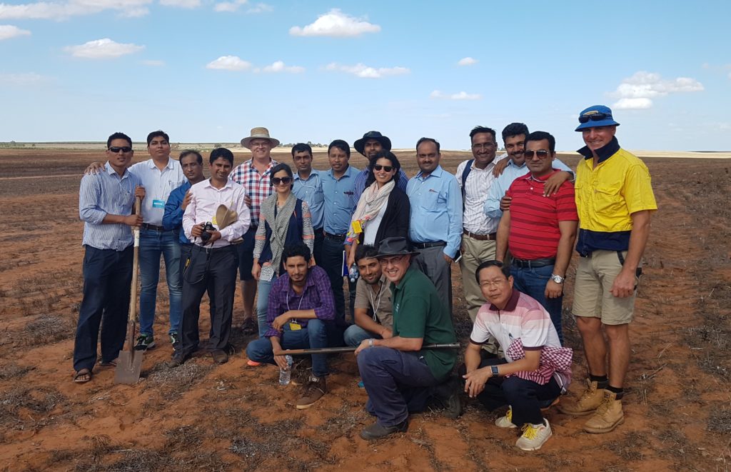 Mr Samouth Chin (front row, right) visits the dryland farm of Mr Paul Rudiger (standing far right) at Loxton, along with other participants from Nepal, Bangladesh and India.