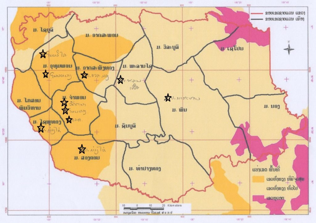 Location of the ten seeder recipients (marked with a star) in seven villages in Savannakhet