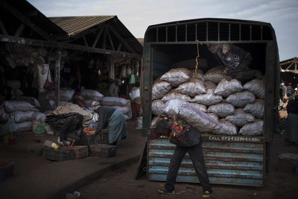 Eldoret’s central market, where potatoes are trucked in from surrounding farms and sold through traders. Photo by Hugh Rutherford for CIP.