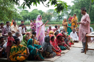 CIMMYT socioeconomist Elahi Baksh gives a farmer training session in the village of Chapor, in the district of Dinajpur, Bangladesh. Photo: S. Mojumder/Drik/CIMMYT.